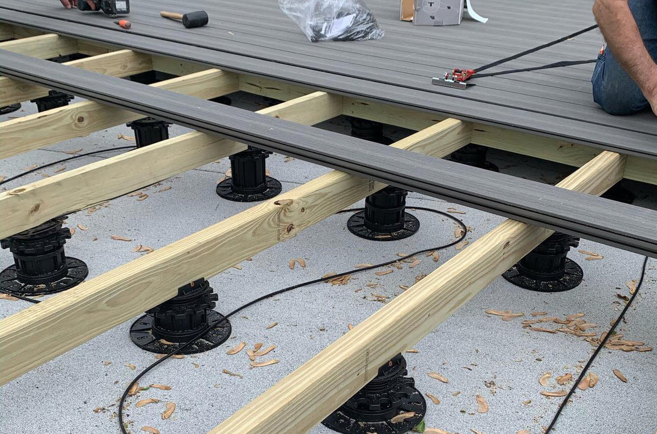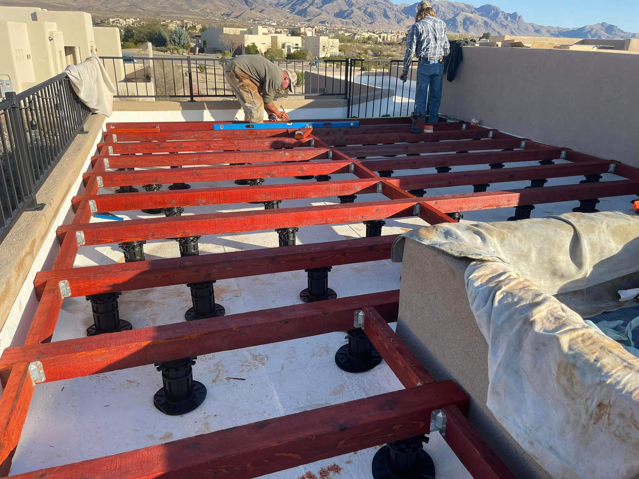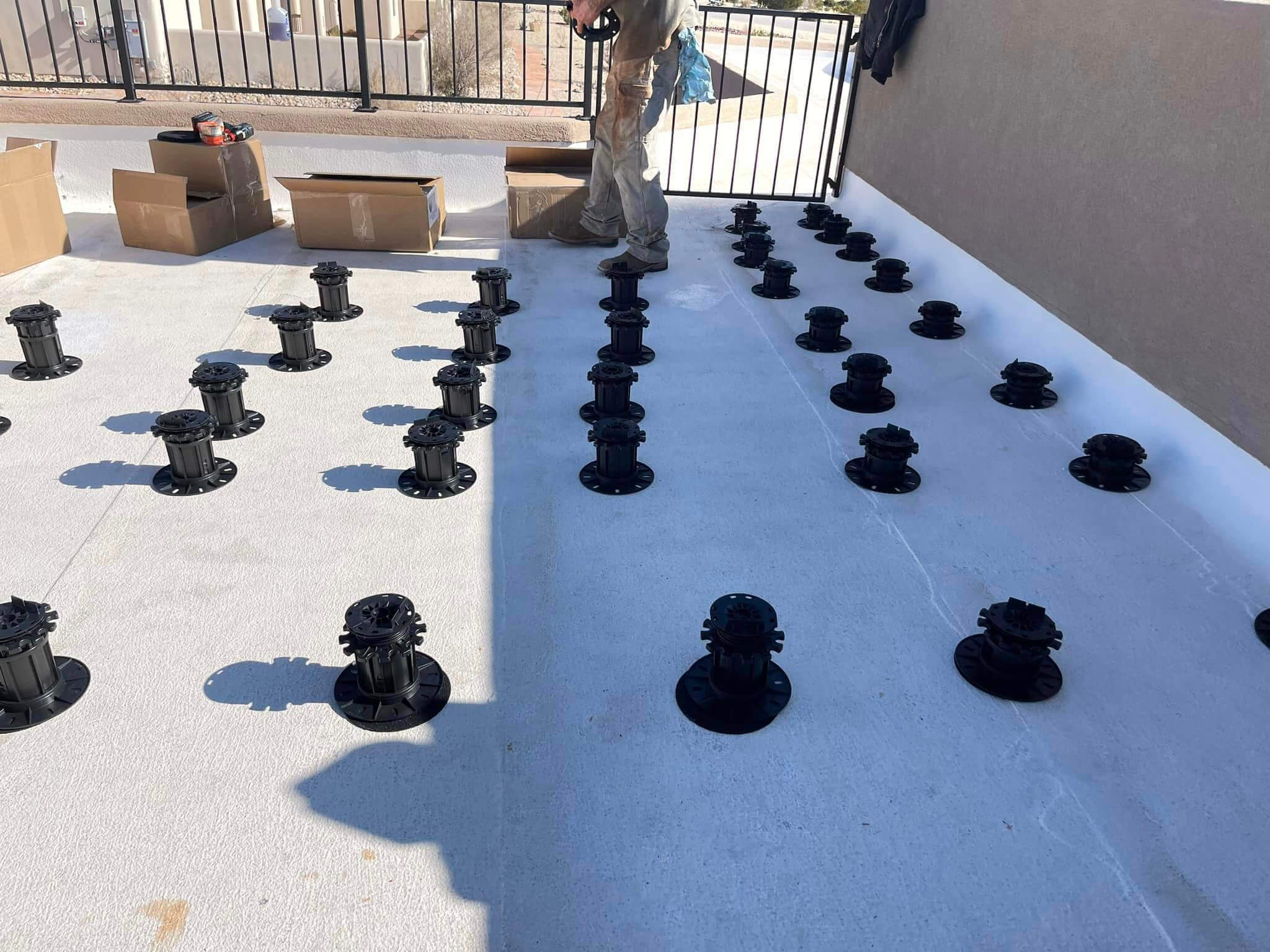 Roof deck being installed by a customer in New Mexico using our height adjustable pedestals.