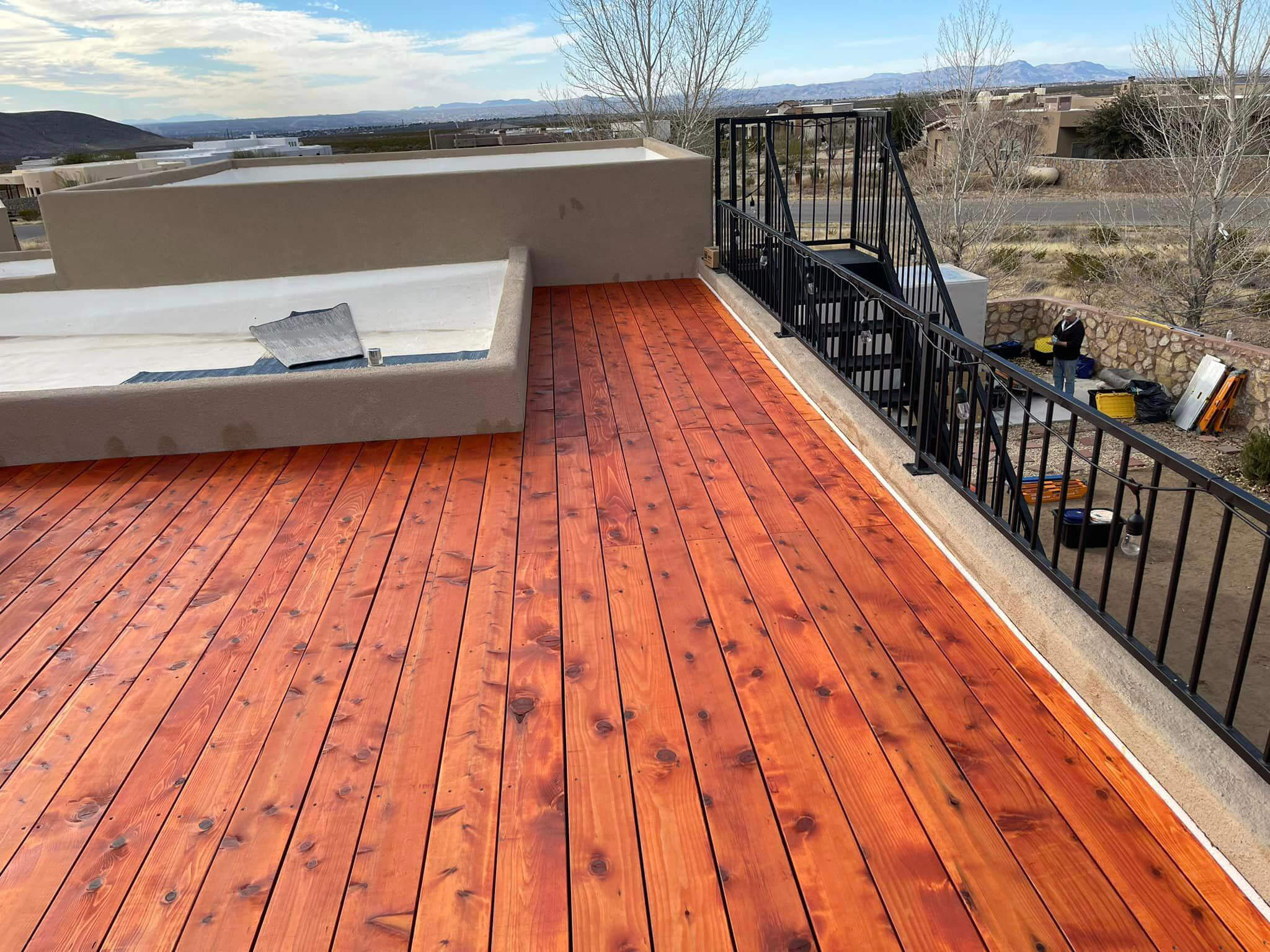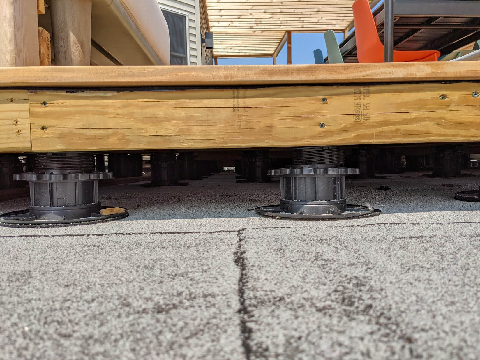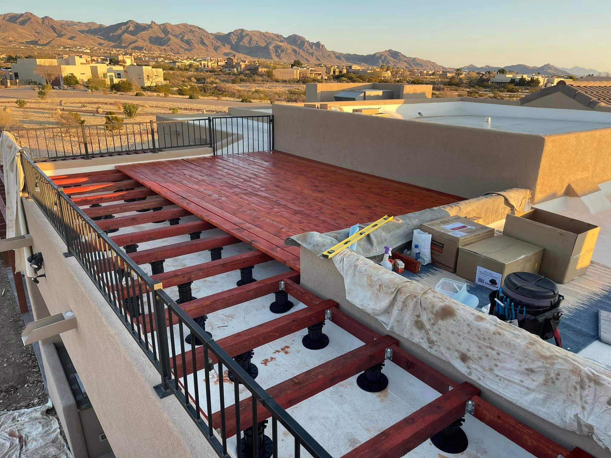 Roof deck being installed by a customer in New Mexico using our height adjustable pedestals.
